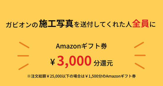 ガビオン設置後のお写真をお送りいただいた方全員にもれなく、3,000円分のAmazonギフト券をプレゼントしています。(※注文総額25,000円以下の場合は1,500円分)